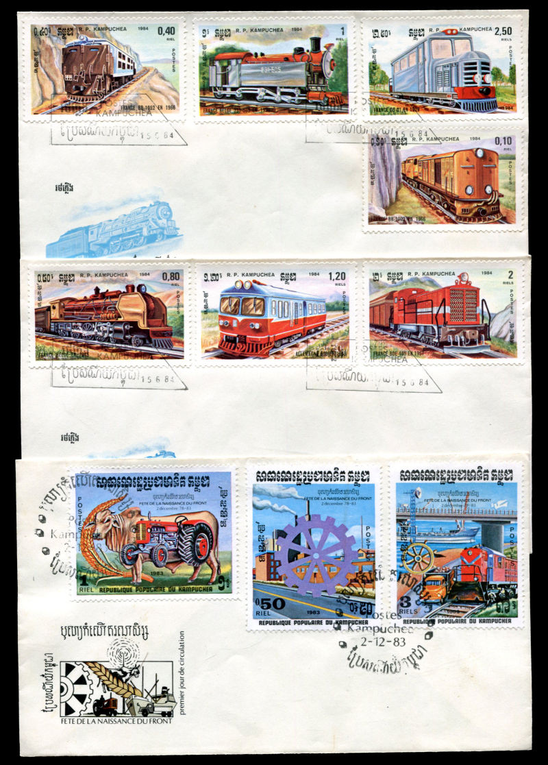 936 FDC   imageCAMPODIA 1983-84 Three FDC covers with Tran or Locomotive design. (Image)