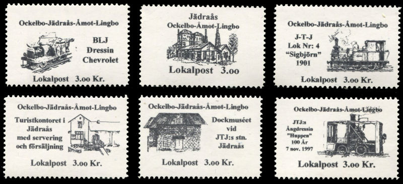 926 ★★   imageSWEDEN Localpost for Ockelbo-Jädraås-åmot-Lingbo with building or locomotive design set of 6. (Image)