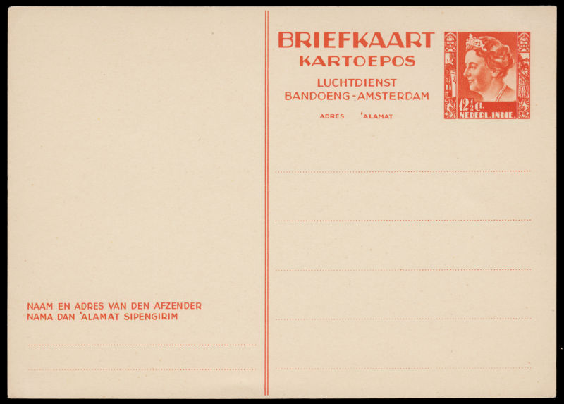 959 PSC   imageDUTCH INDIA Air Service Bandung - Amsterdam pre-stamped card 12½c with Ship and Railway design. (Image)