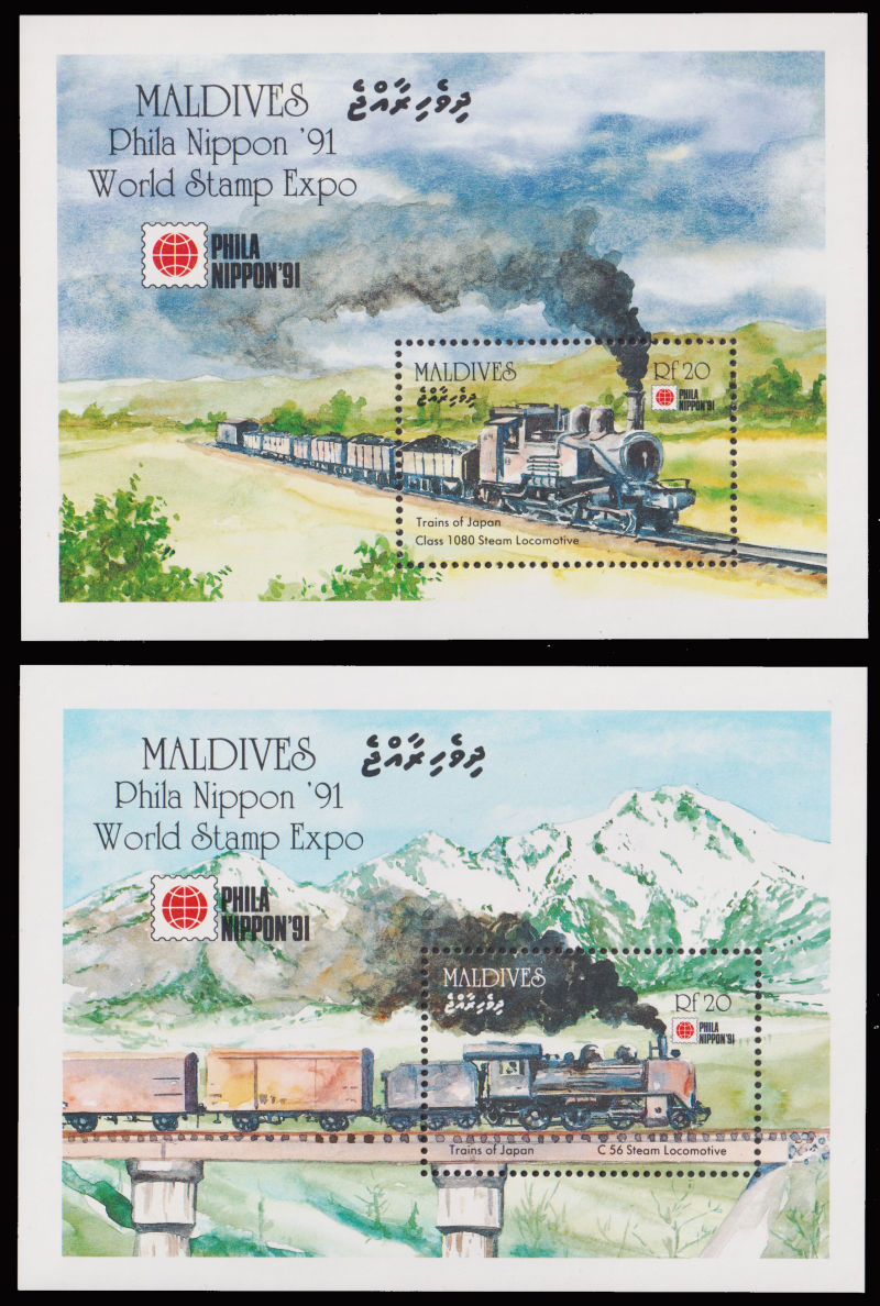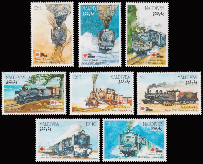 941 ★★   imageMALDIVE 1991 Mi:1573-80 Bl 200-201 Philanippon 91 with Train motives set incl. MS. (Image) (image11) (All Images)