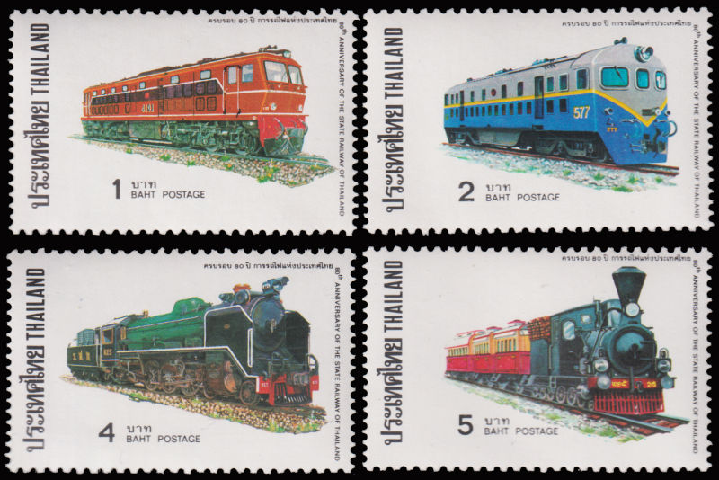 942 ★★   imageTHAILAND 1977 Mi:832-35 Locomotive set. (Image)