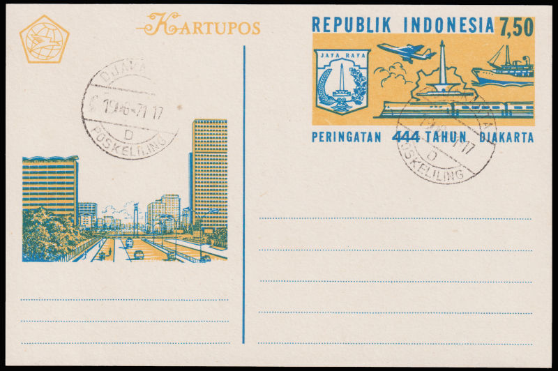 948 PSC   imageINDONESIA pre-stamped card with Transport design cto 1971. (Image)