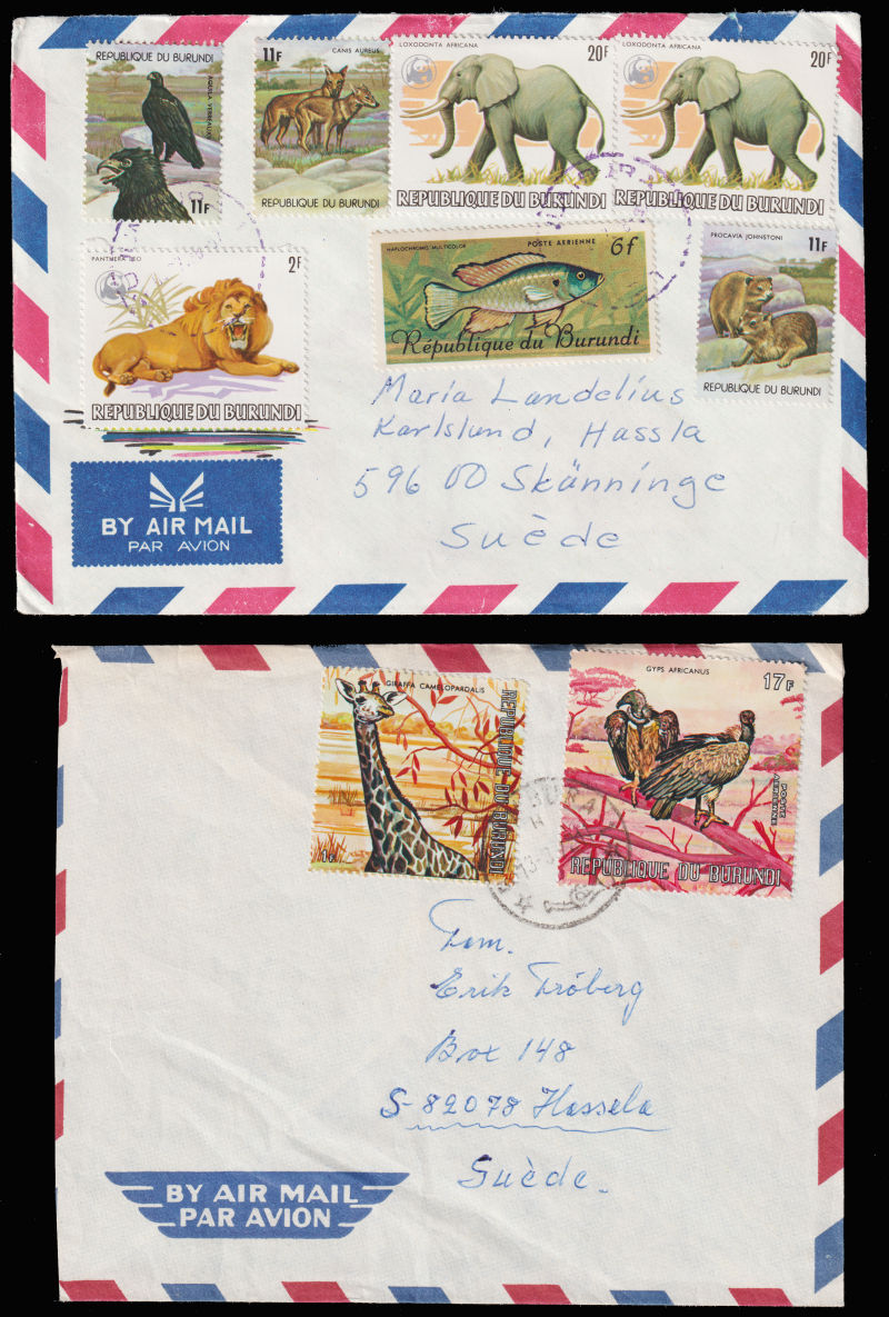 945 c   imageBURUNDI Two covers with Animal stamps sent to Sweden. (Image)