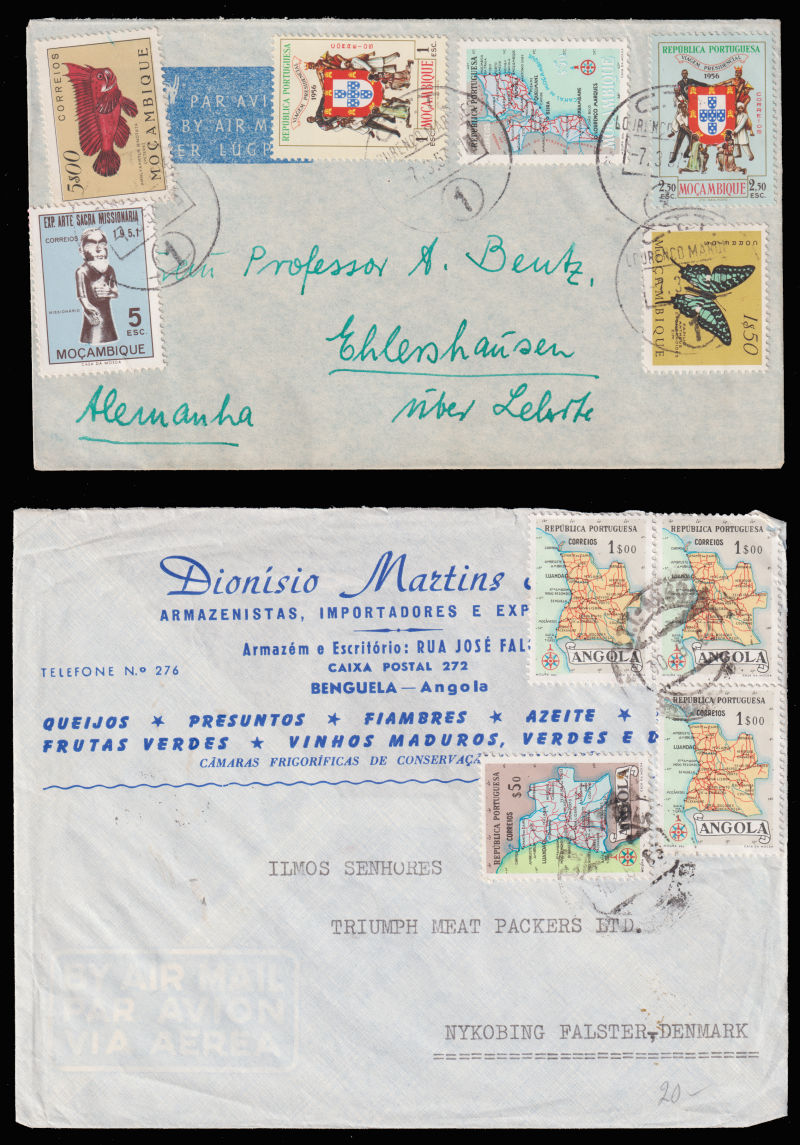 958 c   imageMOCAMBIQUE and Angola Two covers with motif stamps, one missing flap on reverse. (Image)
