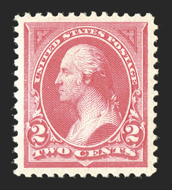 PF and 2009 PSE certificates.#262, $2.00 Bright blue, outstanding color that is particularly deep and luxuriant, razor-sharp impression on fresh white paper, large margins, o.g., faint h.r., very fine; 1970 PF and 2009 PSE certificates. (Image) $2,750.00