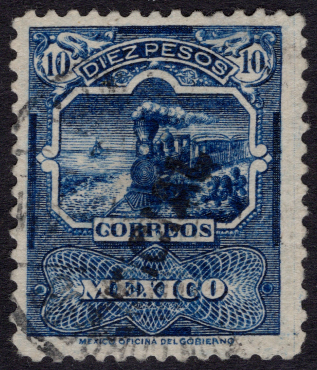 364 Used   imageMexico. 1895 "Mulitas". 1898 10 Pesos Blue "Mulitas", unwatermarked with "Oficial" overprint, nicely centered, in used condition. Few thin spots, nevertheless an extremely rare stamp with less than ten known. 1996 MEPSI certificate. Scott O48B, $5,500. (Image)