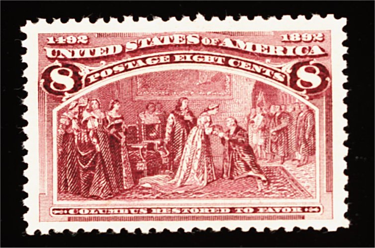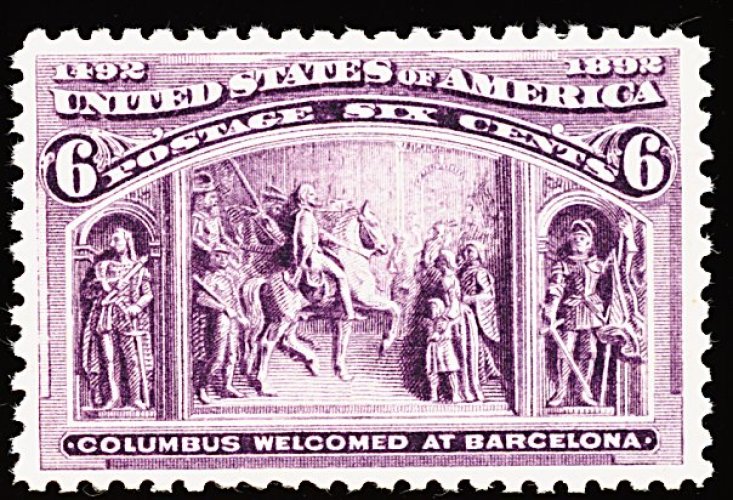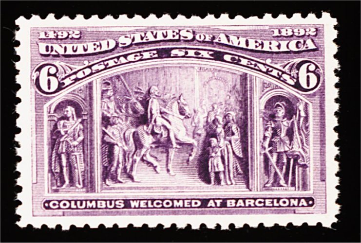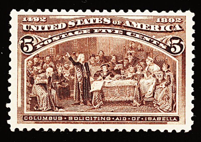 261 nh 234 image#234, 5c Columbian, exceptionally well centered, unusually wide margins, strong rich color, o.g., n.h., extremely fine; 1998 PF certificate. (Image) 180.00