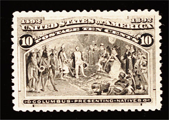 266 nh 237 image#237, 10c Columbian, the perfect mint single for the collector who has been seeking out a Ten Cent Columbian with truly spectacular eye appeal, possessing absolutely flawless centering amid very large margins, but equally as striking is this stamp's incredibly intense color in the preferred black brown shade, plus its impression could not be more detailed on bright fresh paper, even its perforations are uniformly full and long, immaculate o.g., n.h., an extremely fine gem for the most fastidious collector; 2000 PF certificate. (Image) 250.00