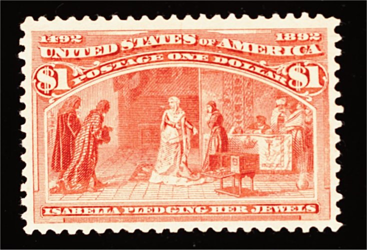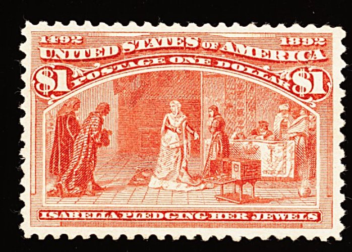 272 og 241 image#241, $1.00 Columbian, an especially choice and handsome mint single that is extraordinarily well centered within unusually large margins, strong bright color, clean o.g., lightly hinged, extremely fine; premium quality One Dollar Columbians are among the most difficult of the entire series to obtain; 2000 PF certificate. (Image) 1,500.00