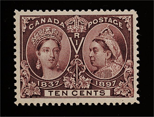957 nh 57 image#57, 1897 10c Jubilee, marvelously well centered within enormously large margins, deep luxuriant color and a strong impression, o.g., n.h., extremely fine and striking; 1999 PF certificate (Unitrade C$420.00). (Image) 210.00