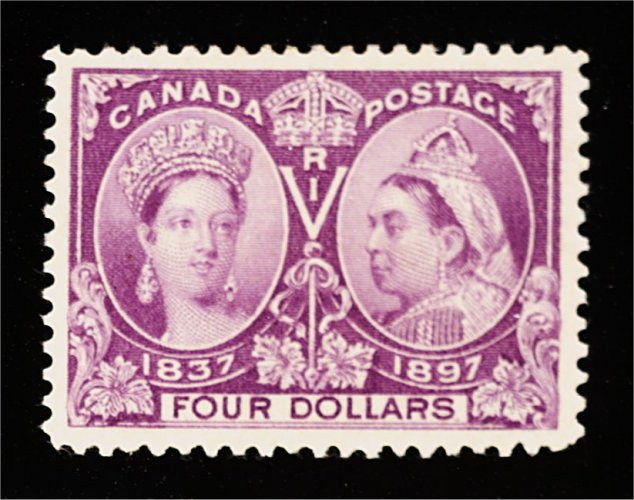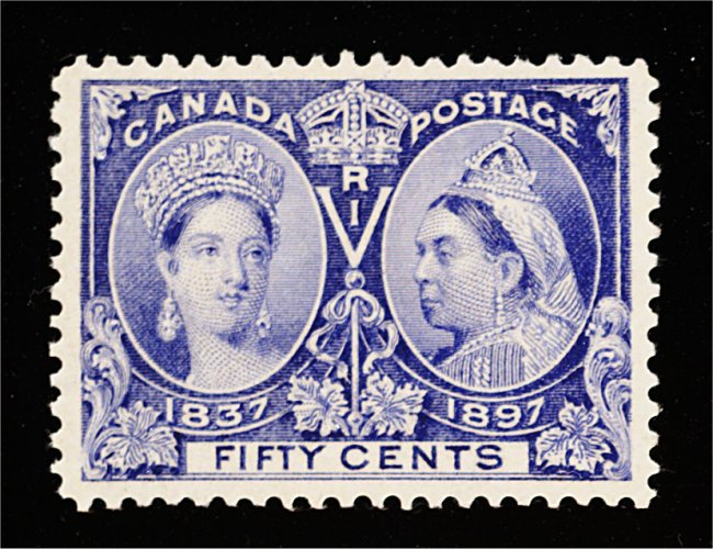 962 nh 60 image#60, 1897 50c Jubilee, exceptionally choice mint single, wonderfully well centered within large margins, rich color, immaculate o.g., n.h., extremely fine; quite scarce both in this premium condition and never hinged; 2001 PF certificate (Unitrade C$675.00). (Image) 550.00