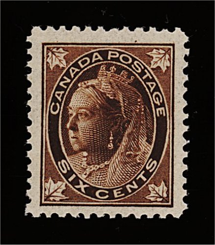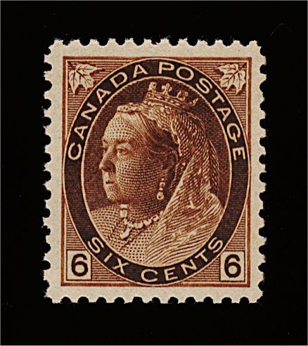 967 nh 71 image#71, 1897 6c Brown "Maple Leaf", an incredible jumbo-margined mint example, boasting enormously large and perfectly balanced margins all around, prooflike color and impression, o.g., n.h., extremely fine; very scarce in this outstanding quality; 1998 CPES certificate (Unitrade C$250.00). (Image) 160.00