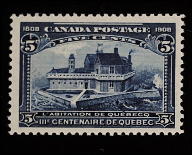 976 nh 99 image#99, 1908 5c Quebec Tercentenary, pristine mint single, wonderfully well centered within oversized margins, strong fresh color and paper, immaculate o.g., n.h., extremely fine and handsome (Unitrade C$180.00). (Image) 100.00