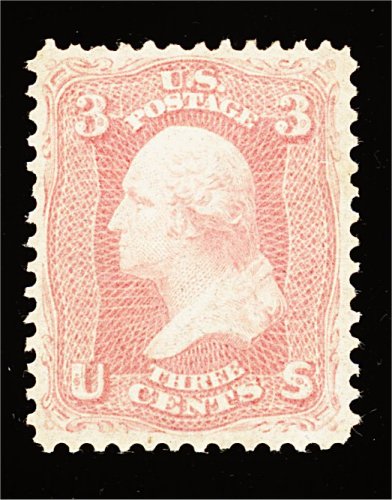 86 og 65 image#65, 3c Rose, an amazing jumbo-margined mint single in the finest attainable quality, boasting enormously large margins all around and being precisely centered within them, contributing further to this stamp's exceptional eye appeal is its incredible freshness, with unusually deep dark color and a razor-sharp impression on crisp paper, full clean o.g., lightly hinged, an extremely fine gem for the perfectionist; 2001 PF certificate. (Image) 130.00