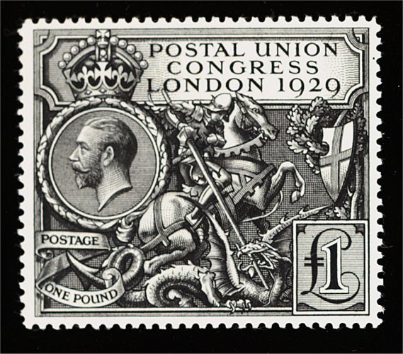 1061 nh 209 image#209, 1929 £1 Black P.U.C., a remarkably fresh and choice mint example, featuring outstanding color and impression on uncommonly bright paper (not toned as so often seen), marvelously well centered as well, o.g., n.h., extremely fine; actually a very scarce stamp in this premium never hinged condition (S.G. #438; £750). (Image) 1,150.00