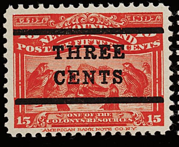 1107 nh 128 image#128, 1920 "Three Cents" surcharge on 15c Scarlet, Ty. I, pristine mint single, sumptuously rich color, well centered, immaculate o.g., n.h., choice very fine; especially scarce never hinged (S.G. #145; for hinged £140). (Image) for hinged 180.00
