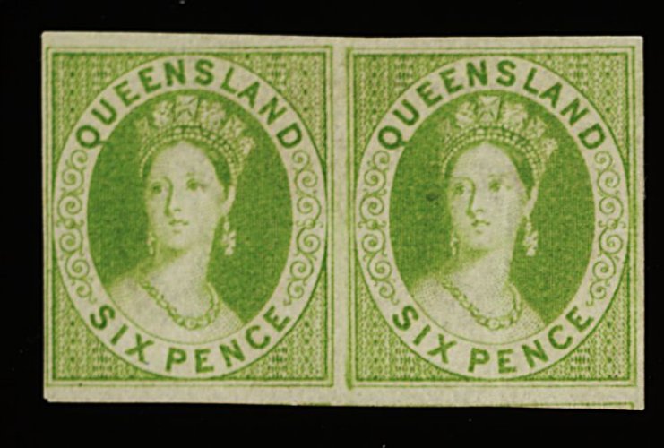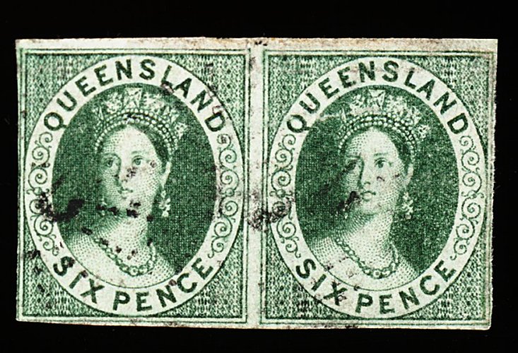 1182 O 3 image#3, 1860 6p Deep green imperforate lovely used horizontal pair, nice color and worn impression, close to large margins and light cancellations, very fine and an exceedingly rare multiple; the only multiple in the Ferrary collection was a used pair; there were no multiples in the Burrus collection (S.G. #3; £1,600+). (Image) 1,500.00+