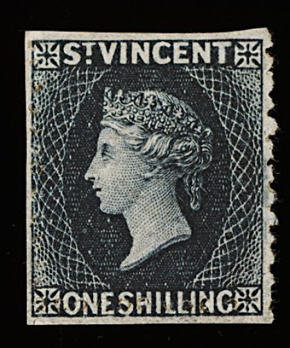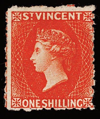 1196 ng 22 image#22, 1873 1/- Lilac rose, perforated 11 to 12 1/2 x 15, one of the few known sound unused examples of this rarity, possessing strong rich color and impression on bright paper, centering is quite typical for these difficult issues, fine; a key stamp in the quest for a complete collection of St. Vincent. (Image) 6,000.00