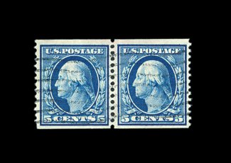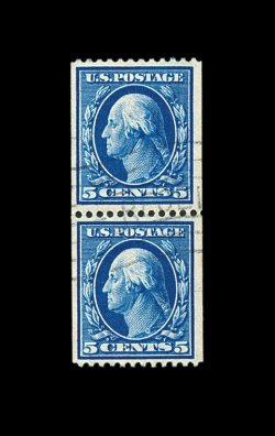 1348 nh 351 image#351, 5c Blue coil, perf. 12 horiz., guide line pair, deep intense color and impression on bright white paper, well centered, o.g., n.h., extremely fine; a rare line pair in this premium never hinged condition; 1975, 1988 and 2001 PF certificates. (Image) 2,500.00