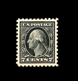 1402 nh 430 image#430, 7c Black, a remarkable quality mint example of this challenging value to find in premium condition, lavishly large and perfectly balanced margins all around, intense color in a "jet" black shade, plus its impression is deeply etched on bright paper, unusually even and intact perforations for a perf. 10 stamp, o.g., n.h., an extremely fine gem for the finest collection; 2003 PF certificate. (Image) 180.00