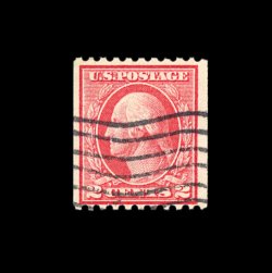 1418 O 449 image#449, 2c Red rotary coil, Ty. I, perf. 10 horiz., used, rich characteristic color and impression, wavy machine cancel, very fine for this scarce coil; 1983 PF certificate. (Image) 600.00