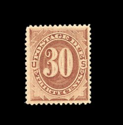1582 ng J13 image#J13, 30c Deep brown special printing, an incredibly choice unused example of this postage due rarity, without gum as is so often the case with the Special Printings, however this stamp is far above the norm as it is completely free of any of the faults which plague most known copies, plus it is remarkably well centered, strong distinctive color, extremely fine; with only 179 issued (and fewer surviving) this is one of the finest available; 1971 and 1999 PF certificates. (Image) 4,500.00