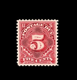 1588 og J34 image#J34, 5c Deep claret, incredibly well centered, with uncharacteristically wide margins all around, deep luxuriant color and a razor-sharp impression, pristine o.g., with just the faintest suggestion of a hinge mark, extremely fine; a truly rare stamp in this gem quality; 2003 PF certificate. (Image) 325.00
