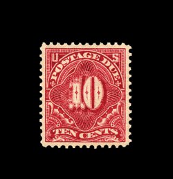 1590 og J35 image#J35, 10c Deep claret, superb mint example of this scarce value, possessing mathematically precise centering amid unusually wide margins, sumptuously rich color and a deeply etched impression on pristine paper, immaculate o.g., faintest trace of hinging, an extremely fine large-margined gem; 2003 PF certificate. (Image) 325.00