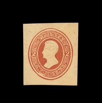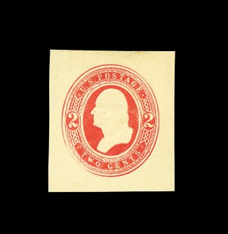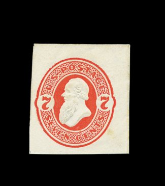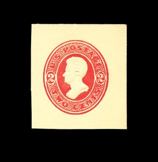 1675 og U246 image#U246, 2c Red on fawn, mint cut square, being a full corner measuring 42x40mm, highly detailed embossing, fresh and extremely fine. (Image) 400.00