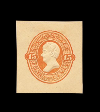 1668 og U200 image#U200, 15c Orange on cream, mint cut square, measuring 35x39mm, crisp detailed embossing, extremely fine. (Image) 600.00