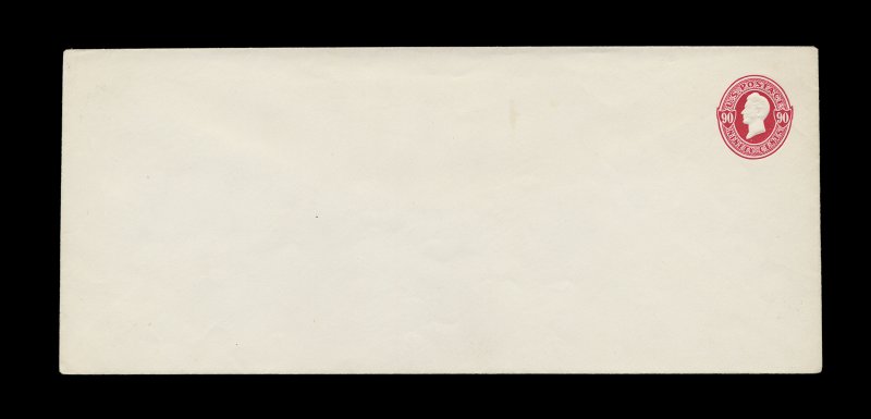 1670 ogc U211 var. image#U211 var., 90c Carmine on white, die 70, size 25, knife 122, wmk. 2, large mint entire, being the larger and scarcer of the two envelope sizes listed in the UPSS catalog, immaculately fresh and bright, extremely fine; a gem example of this seldom offered entire (UPSS #630). (Image) 160.00