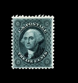 1062 og 44 image#44, 12c Greenish black reprint, without gum as issued, a most impressive example of this reprint rarity, possessing huge margins for this, with its perforations well clearing the design all around which is a very rare occurrence, wonderfully well centered, plus its color and impression are truly prooflike on especially bright paper, an extremely fine gem; one of the finest of the 479 issued; 2003 PF certificate. (Image) 3,500.00