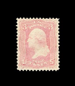 1063 og 64 image#64, 3c Pink, an incredibly choice example of this exceedingly rare mint 19th century stamp, being in a quality quite unlike the vast majority of the small number of known mint copies, possessing a marvelous overall freshness, rich unmistakable Pink color, exceptionally well centered within large margins, pristine full o.g. which shows just the barest trace of hinging (if at all), accompanying certificate inexplicably calls the stamp "slightly toned" with which we respectfully disagree, otherwise extremely fine; 1971 PF certificate; ex-Chapin. (Image) 9,000.00