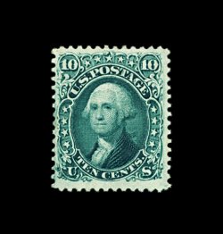 1067 og 68a image#68a, 10c Dark green, a remarkably choice mint example of this surprisingly difficult and, in our opinion, undercataloged stamp, being in a quality far superior to most, incredibly fresh and crisp, with the most intense color and impression imaginable in a dark green shade, wonderfully well centered within large margins, particularly clean full o.g. that has been lightly hinged only once, extremely fine for this; far more rare in this condition than many collectors realize; 2002 PF certificate. (Image) 950.00