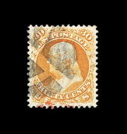 1072 O 71 image#71, 30c Orange, a most extraordinary quality used example, boasting not only extravagantly large margins which are most uncharacteristic of this value, but it is perfectly centered within these impressive margins as well, lovely vibrant color on fresh paper, excellent neat strike of a fancy segmented cork postmark, plus just a trace of a red cancel, an extremely fine used gem; a true condition rarity; 2002 PF certificate; the Scott catalog notes "Values for No. 71 are for copies with small margins, especially at sides. Large margined examples sell for much more." (Image) 185.00