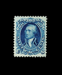 1073 ng 72 image#72, 90c Blue, scarce unused single, very well centered within uncharacteristically large margins, fresh color and paper, choice very fine; 2001 PSE certificate. (Image) 1,400.00