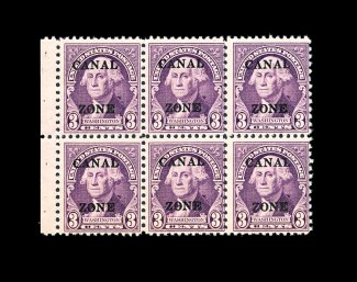 1781 ogbl 85a #85a, 3c Violet, "Zone Zone" error, being the center stamp in a block of nine, deep intense color, usual centering for this, slightly tropicalized o.g., fine; a scarce error. (Image) 600.00