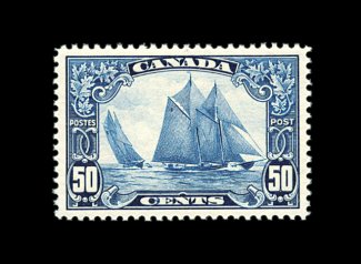 2062 nh 158 image#158, 1929 50c "Bluenose", unusually choice mint single, perfectly centered within extra-large margins, o.g., n.h., extremely fine (Unitrade C$600.00). (Image) 300.00