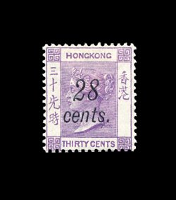 2105 og 30 image#30, 1876 "28/cents." surcharge on 30c Violet, mint single with bright violet color, which often comes faded on this value, o.g., h.r., trivial thin speck in watermark, otherwise very fine for this scarce mint value (S.G. #21; £1,300). (Image) 1,250.00