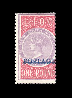 2171 og 75A image#75A, 1885-86 £1 Rose and violet, scarce mint high value, bright fresh colors, o.g., centered to right into the design as is so often the case with these large format high values, bottom left corner perf. separated and rejoined, still a presentable example of this rare stamp; 2001 Brandon certificate (S.G. #242; £2,500). (Image) 3,400.00