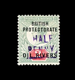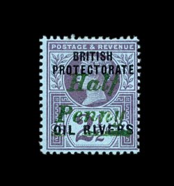 2176 og 13 image#13, 1893 "Half/Penny" Green surcharge on 2 1/2p Violet on blue, strong colors, o.g., h.r., fresh and fine; signed Rendon (S.G. #27; £375). (Image) 375.00