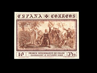 2526 nh 418-32, C31-42, E8 vars image#418-32 vars., C31-42 vars., E8 var., 1930 1c-10P Columbus, imperforate cplt., including the air posts and special delivery stamp, all with large margins, air post issues are all sheet-margin examples, bright and fresh, o.g., n.h., very fine (Michel #502U-29U; €600). (Image) 800.00