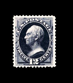 1175 og 162 image#162, 12c Blackish violet, an especially choice mint example of this very scarce Bank Note, possessing exceptional centering within very large margins, gorgeous intense color and a well incised impression which is wonderfully contrasted by its bright white paper, full o.g., lightly hinged, extremely fine; any mint Twelve Cent Continental Bank Note with original gum is terribly elusive, but to locate one in the premium condition found here is a true rarity; 2003 PF certificate; ex-Chapin. (Image) 2,250.00