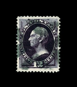 1161 O 140 image#140, 12c Dull violet with grill, an exceedingly choice used example of this rare grilled stamp, possessing extravagantly large margins which are most uncharacteristic of this stamp, quite well centered as well, strong color, lightly cancelled, extremely fine overall; not often encountered in this premium condition; 2000 PF certificate. (Image) 3,000.00