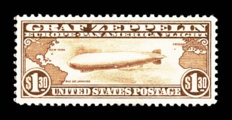 1034 nh C14 image#C14, $1.30 Graf Zeppelin, exceedingly well centered within large balanced margins, rich color, o.g., n.h., extremely fine and choice. (Image) $700.00