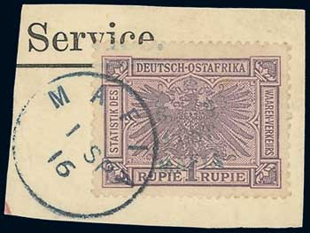 136 : width="300p" alt="image" ></a></cfif>1r. lilac handstamped in bluish green and tied by "mafia" single-ring d.s. (1.9.16) in the same colour on OHMS piece, fine. B.P.A. Certificate (1980). Photo Estimate £ 300-400<A