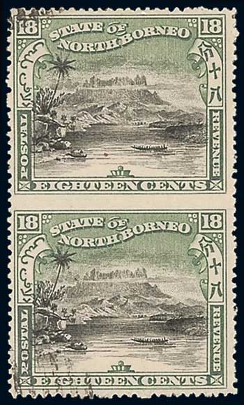 136 : SRC="https://d3ums4016ncdkp.cloudfront.net/auction/main/3015/3015_1340_1.jpg" width="300p" alt="image" ></a></cfif>18c. black and green vertical pair, variety imperforate between, fine and lightly cancelled to order. Sc. 87a; S.G. 108b, £300.