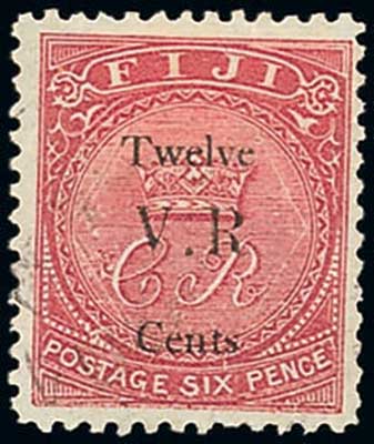 136 : width="300p" alt="image" ></a></cfif>12c. on 6d. rose, variety no stop after "R", very lightly cancelled with trace of a datestamp. Fine and rare. S.G. 21a, £1,000. (WF). Photo Estimate £ 500-600<A