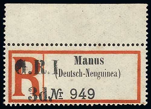 136 : width="300p" alt="image" ></a></cfif>Manus No. 949, a marginal example from the top of the sheet, variety no stop after "I", fresh with large part original gum. A fine and rare stamp of which Bob Gibbs records only three mint examples. R.P.S.