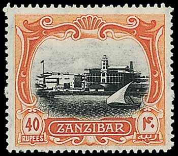 136 : width="300p" alt="image" ></a></cfif>Zanzibar Later Issues — 40r. black and orange-brown, very fine mint. Sc. 116; S.G. 242, £425. Photo Estimate £ 150-180<A HREF="https://d3ums4016ncdkp.cloudfront.net/auction/main/4012/4012_668_1.jpg"
